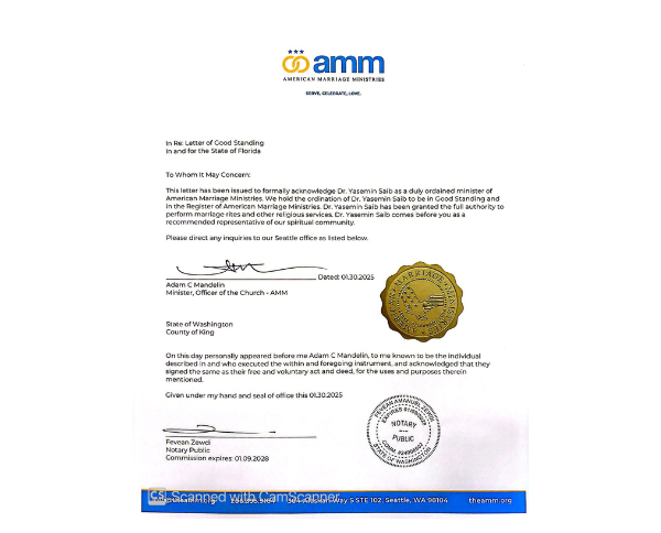Conduct civil, spiritual, religious-friendly, or interfaith weddings in Arabic, English, or bilingual formats, tailored to your culture, values, and traditions.